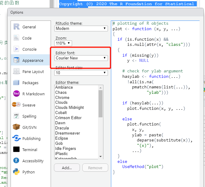 这个时候,课程微信群其中一个小伙伴灵机一动,说你的代码字体好丑,让我们想起来了,应该是可以调整字体,所以让学员打开如下所示的界面并且截图啦: