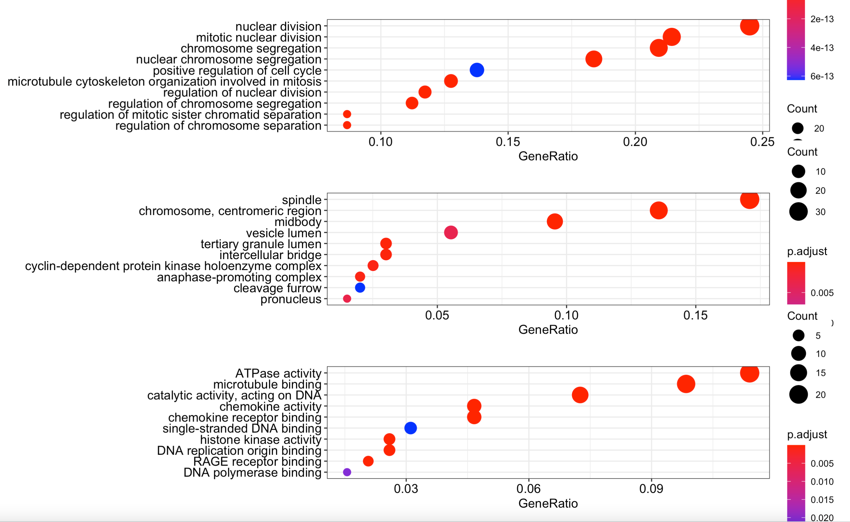 dotplot(go1) / dotplot(go2)/dotplot(go3)