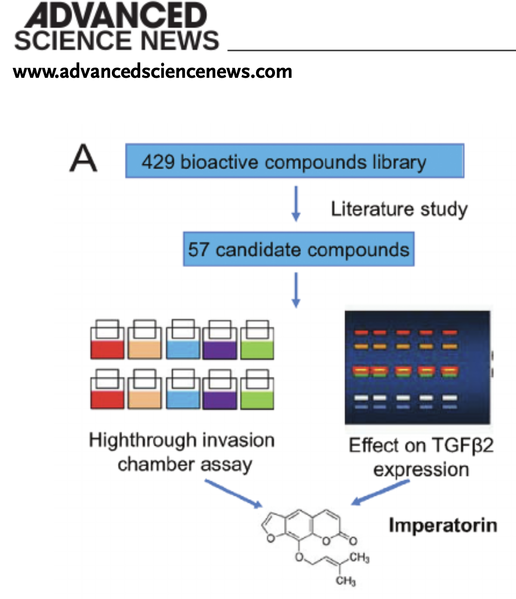 其实这个数据挖掘步骤仅仅是该文章的一个引子,后续关于TGFβ2的探索也很精彩啊,该研究于2020年发表在《 Adv Sci 》杂志的文章《Direct Targeting of CREB1 with Imperatorin Inhibits TGFβ2‐ERK Signaling to Suppress Esophageal Cancer Metastasis》,链接是:https://onlinelibrary.wiley.com/doi/full/10.1002/advs.202000925 。
