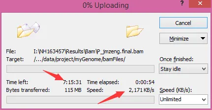 然后我把公司处理好的bam文件上传到服务器做下游分析,我用的winscp软件把文件传到服务器上的!